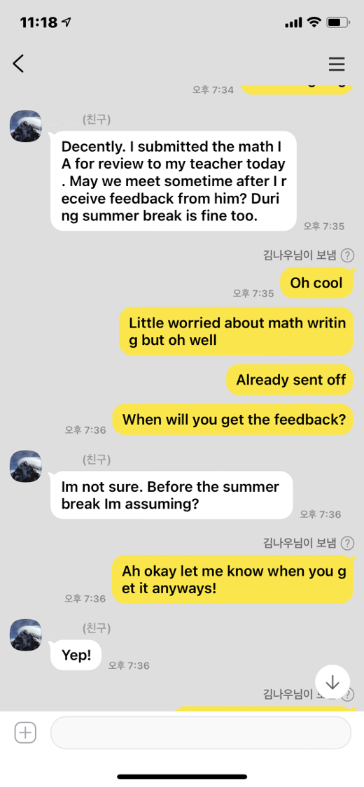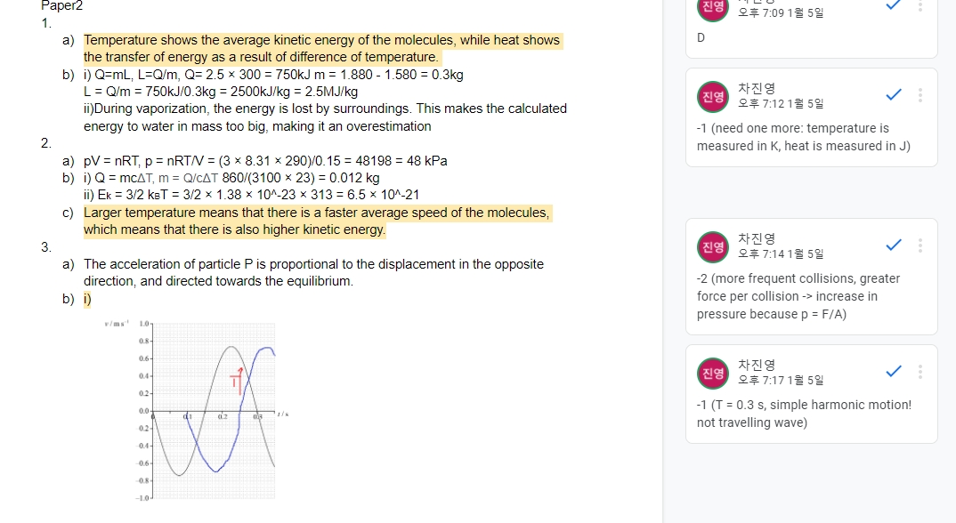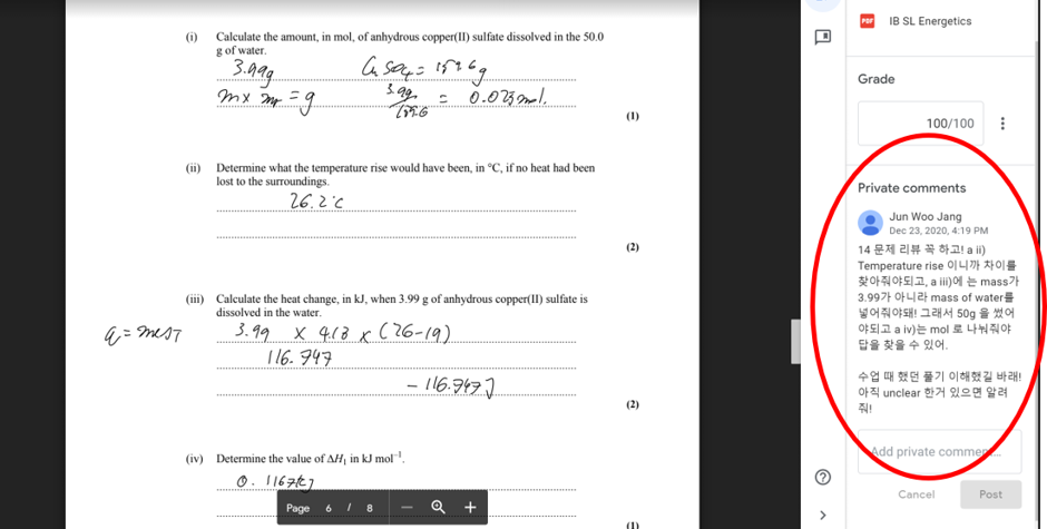 숙제를 다 풀고 구글 클레스룸에 제출하면 선생님의 피드백과 코멘트까지 받을 수 있습니다.